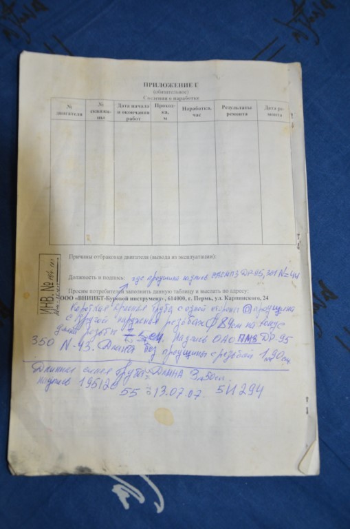 Изготовитель ООО ВНИИБТ Буровой инструмент г. Пермь