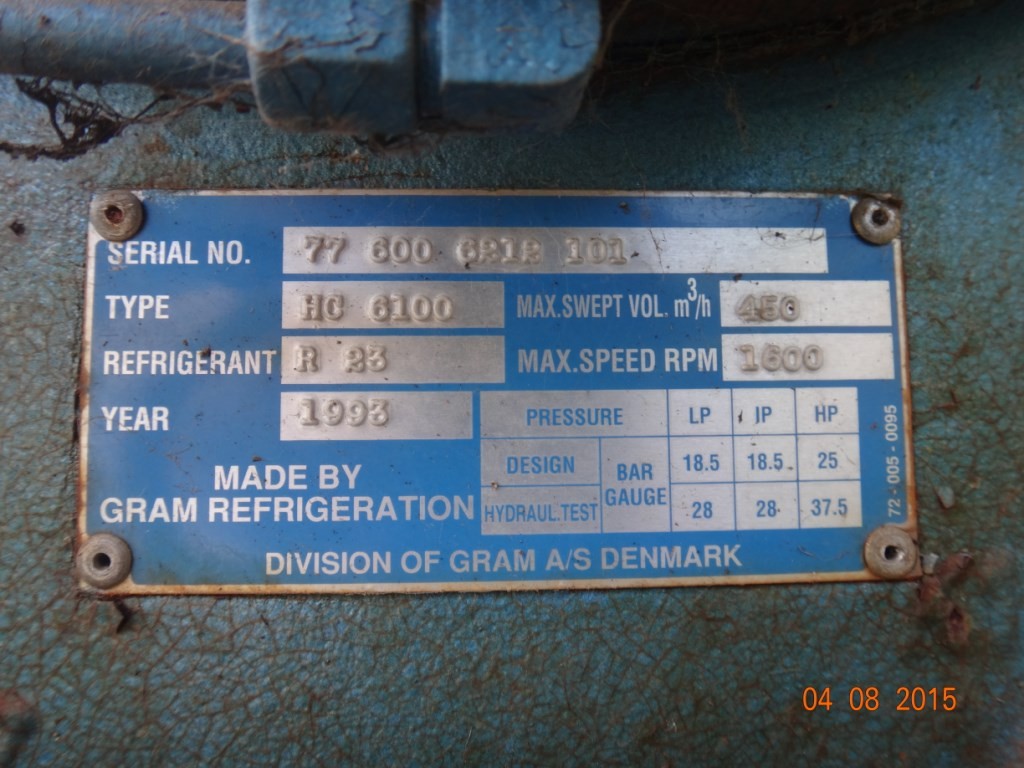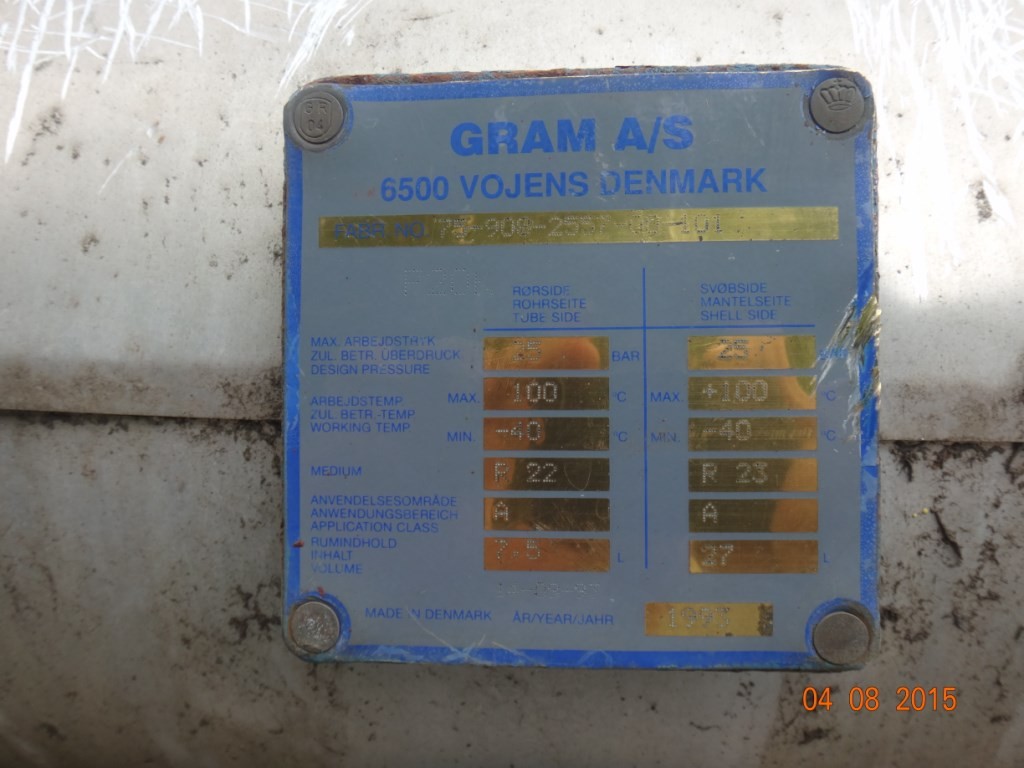 На холодильной установке установлено два компрессора фирмы GRAM (Дания):