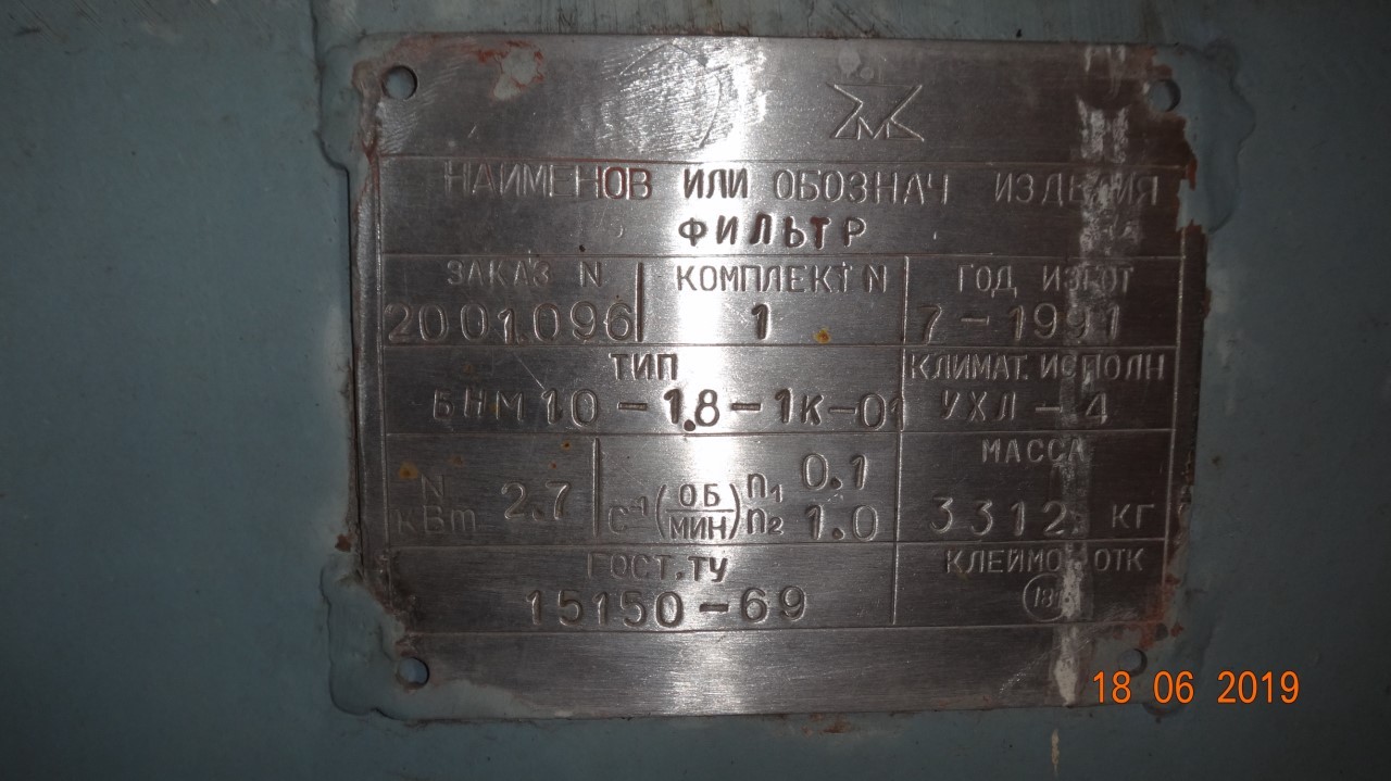 Типоразмер фильтра БНМ10-1,8-1К (исполнение не герметизированное)