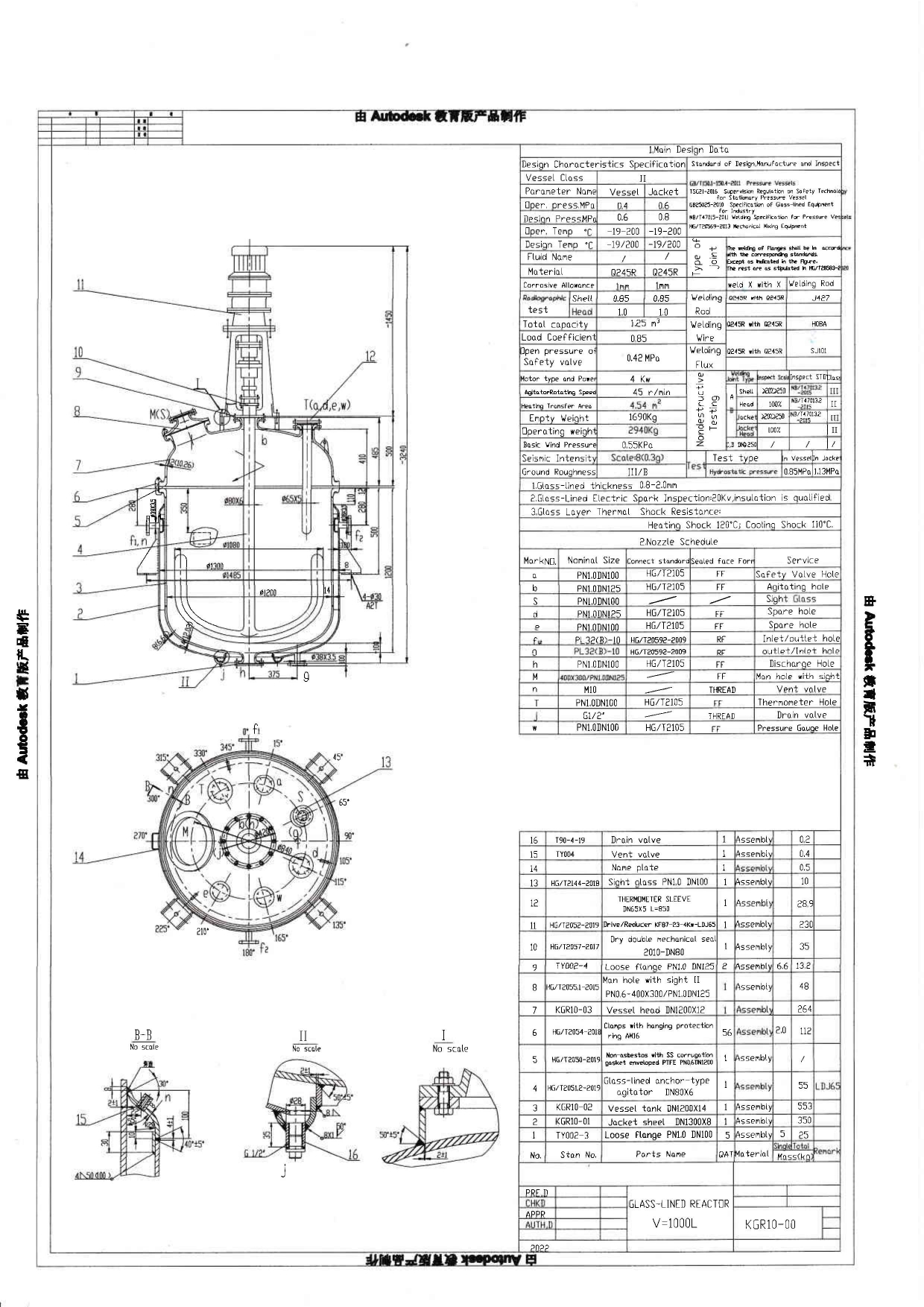 Пробное давление в рубашке 1,13 МПа
