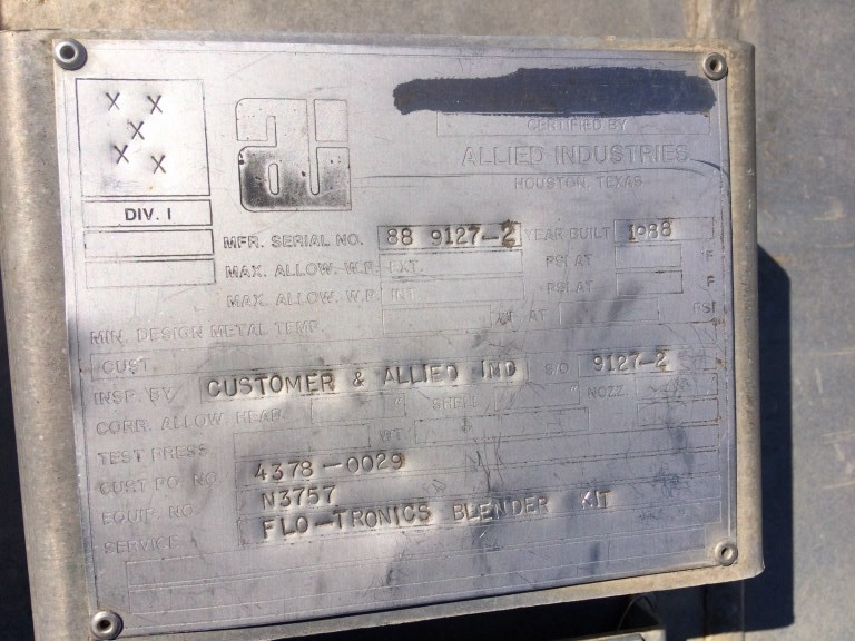 Изготовитель ALLIED INDASTRIES HOUSTEN, TEXAS