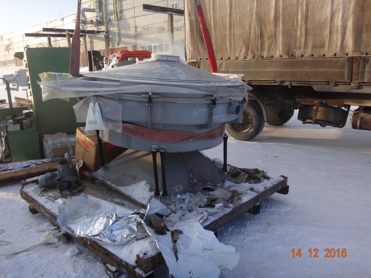 барабанные просеивающие машины состоят из главного основания и круглого корпуса сита. На главном основании главный вал с верхней несущей плитой и противовес располагаются на двух роликовых подшипниках и приводятся в действие эл. двигателем посредством бесступенчатой клиновидной ременной передачи с числом оборотов, обычно, около 215 об/мин. На большем шкиву клиновидного ремня предусмотрена дополнительная система балансировки для уменьшения горизонтальной и вертикальной сил.